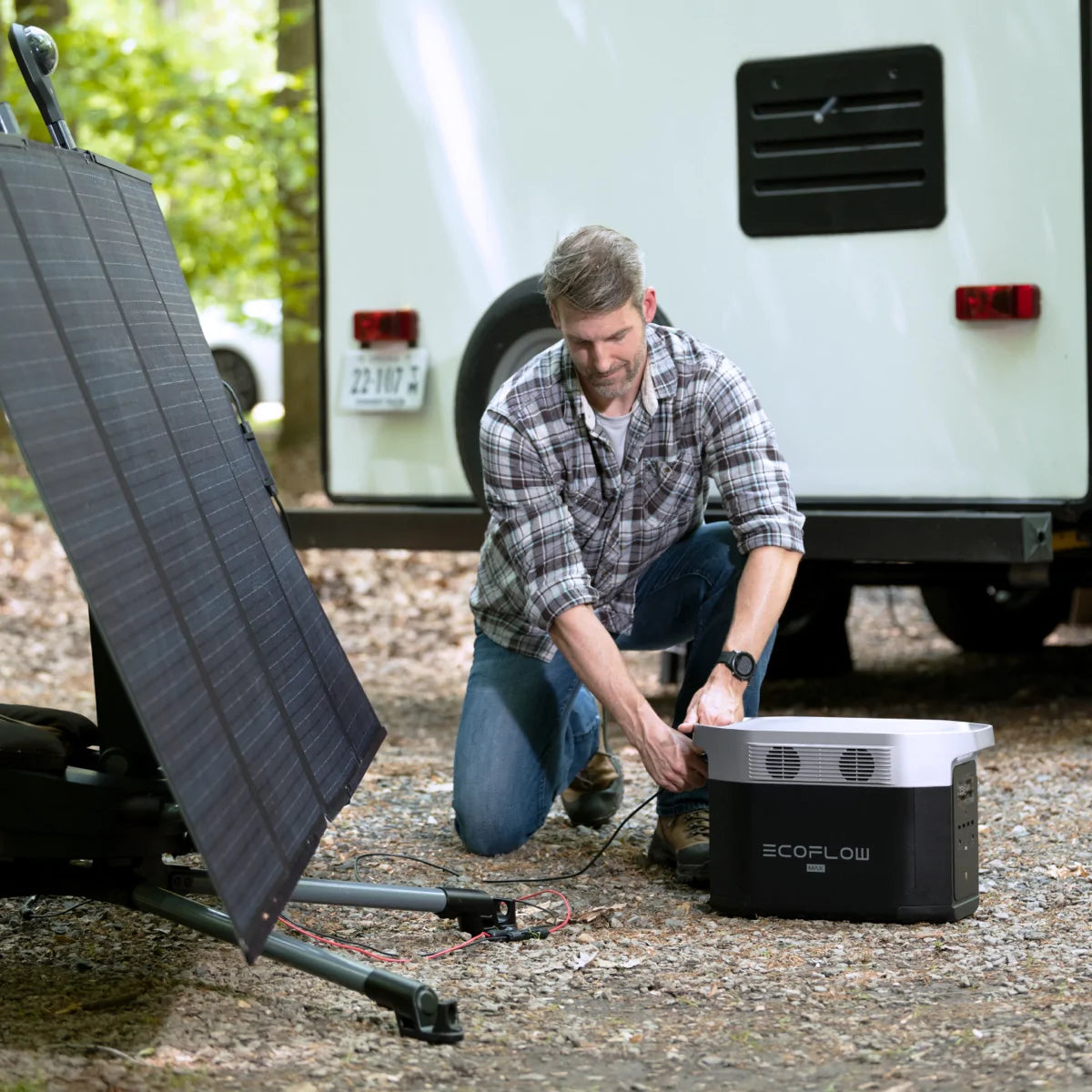 DELTA Max connects with up to 2x 400W EcoFlow solar panels to deliver 800W Max solar charging speeds. With a voltage range from 11-100V and the Solar connector, you can also connect other solar panels to your DELTA Max. Even during cold or cloudy days, our smart maximum power point tracking (MPPT) algorithm automatically detects voltage and current in real time to give you optimum solar generation throughout the day.