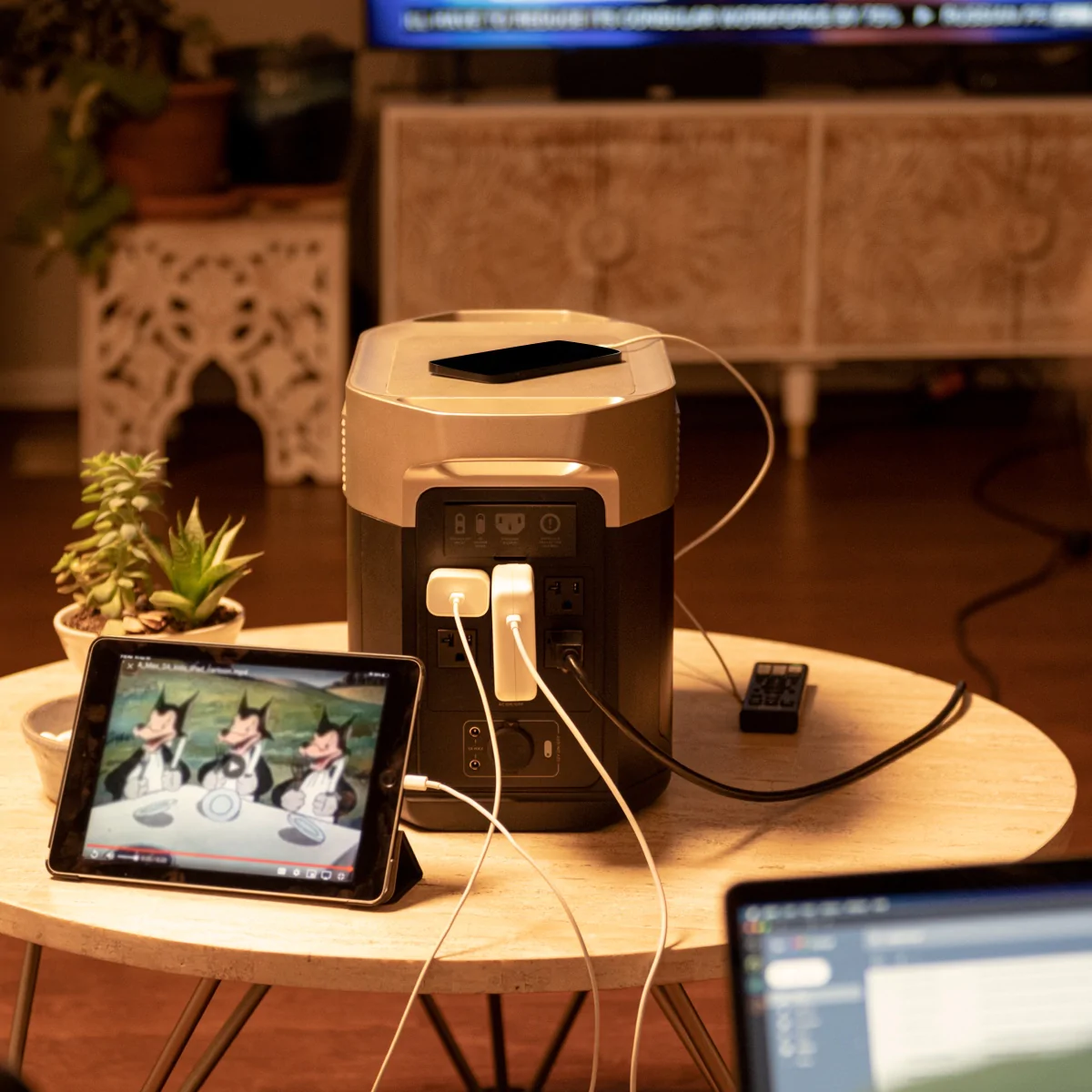 When your portable power station is plugged into the wall, any electronics plugged into it are powered from the grid and not its battery. When power from the grid stops, as in a blackout, the power station automatically switches to battery power within 30ms.
