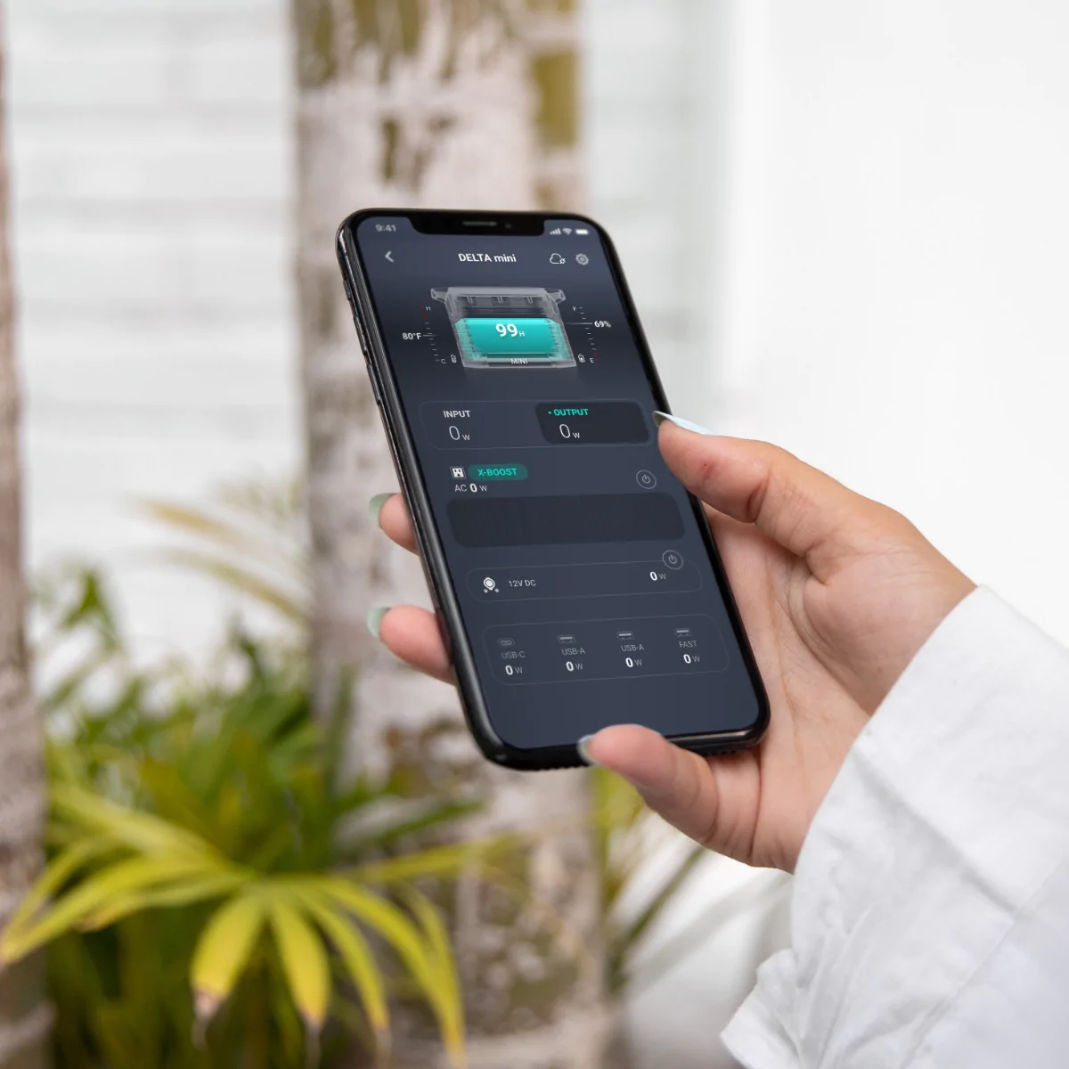 The EcoFlow app shows how much solar you’re bringing in and how many watts your slow cooker and mini-fridge are pulling. Connect it to the internet and control it from anywhere. Learn more