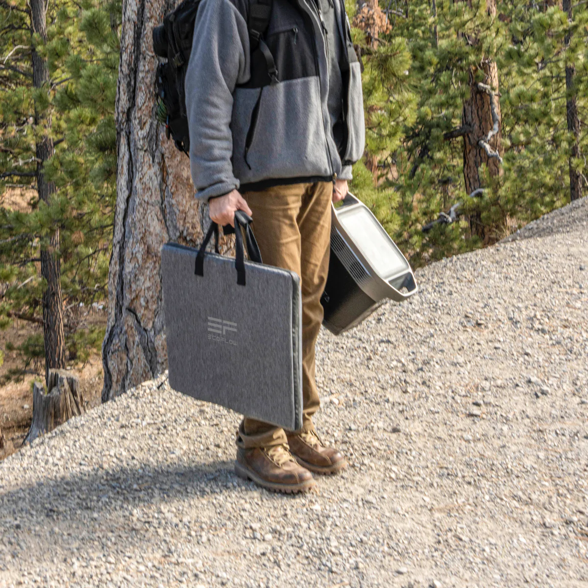 Harness the power of the sun by connecting DELTA to three 160W solar panels to fully charge in just 3.5-7 hours. Alternatively, you can connect DELTA to four 110W solar panels to fully charge in 4-8 hours.