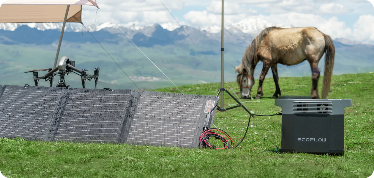EcoFlow DELTA 2 solar generator: Secure your power supply with an EcoFlow DELTA 2 solar generator bundle at home or on the go. Plug in 110W Portable Solar Panels and get up to 500W input to charge from anywhere in as fast as 3-6 hours.