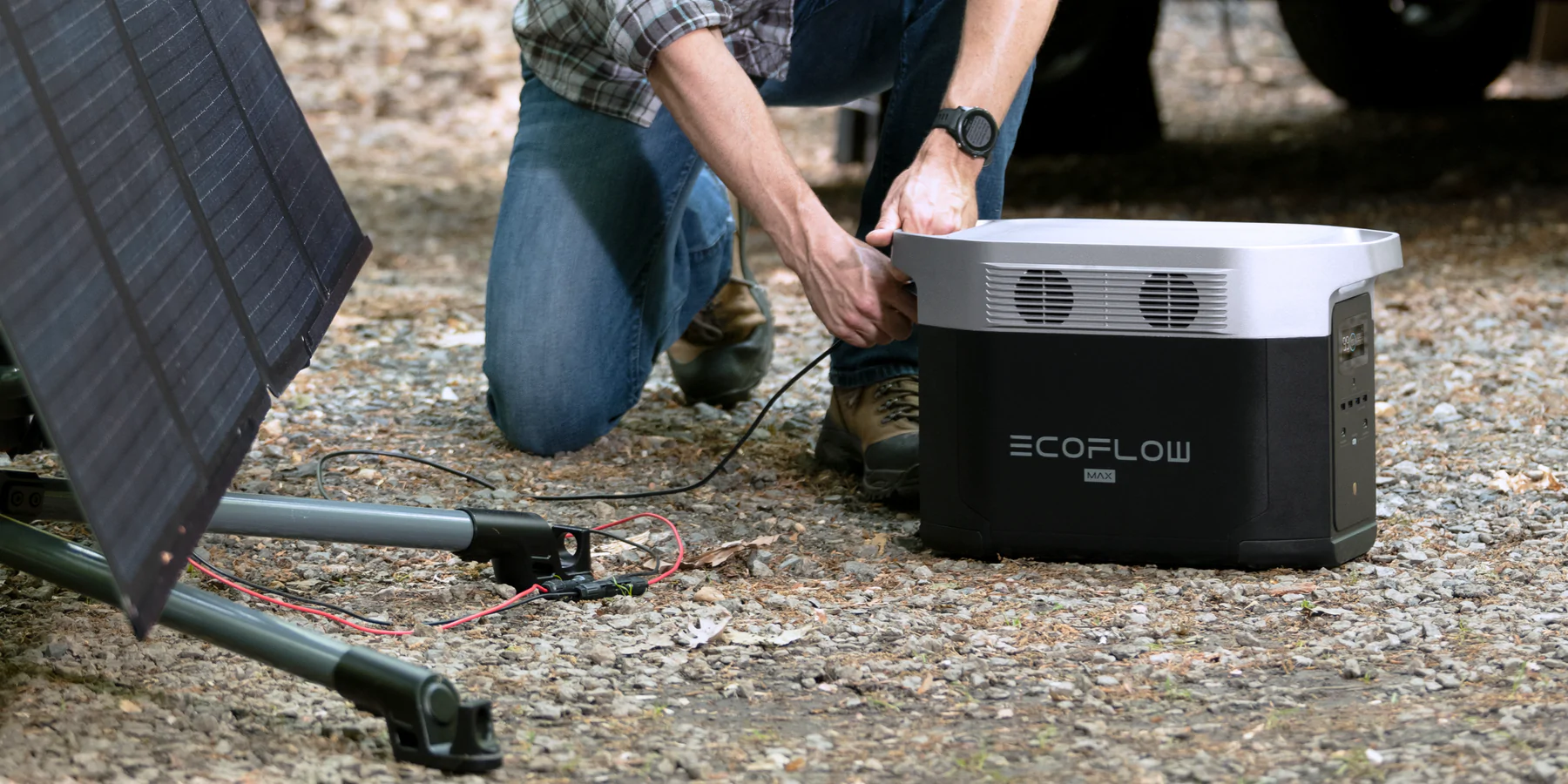 When charging DELTA Max and its extra battery together, you can reach 3600W max charging speeds by combining any two methods of AC, solar and Smart Generator. For DELTA Max single unit, you can recharge it at standard wall outlets (1800W max), or combine AC and solar charging to reach max 2000W charging speeds.