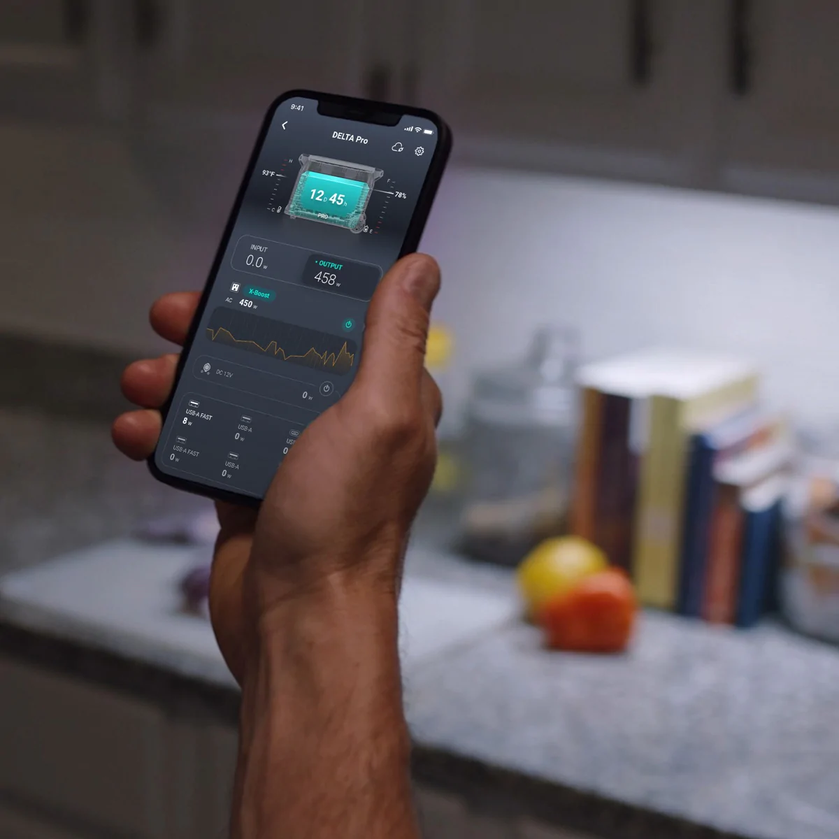A single DELTA Pro unit packs a 3600W AC output, which can be expanded up to 4500W with X-Boost technology. Power 99.99% heavy-duty devices at home, outdoors, or at work. You can even pair two units together to achieve 7200W.