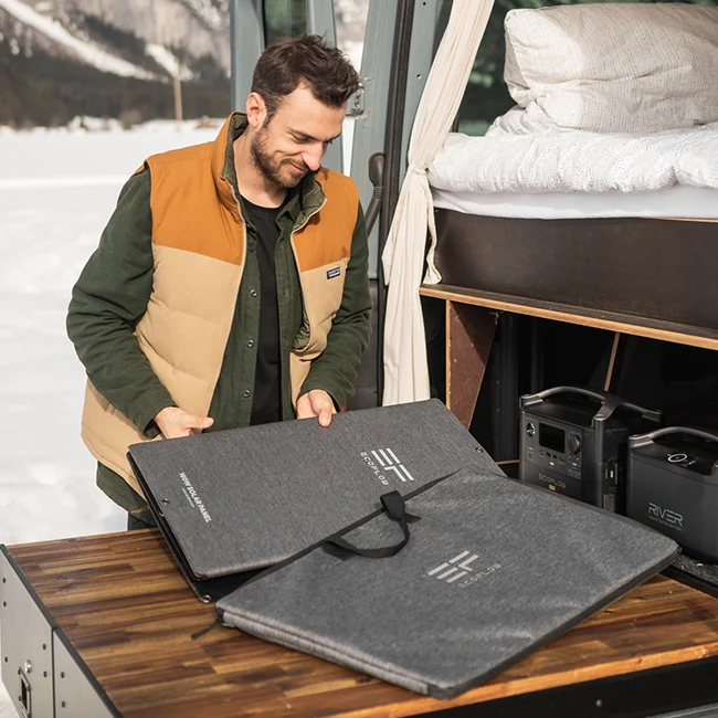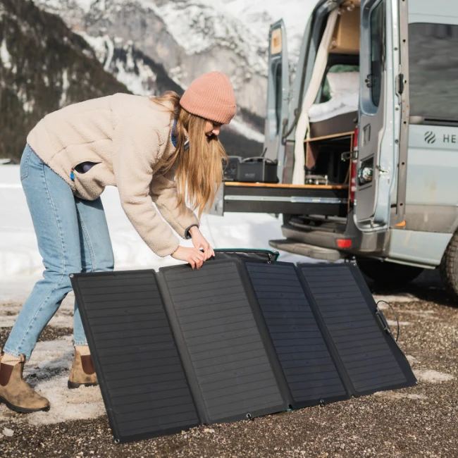Stay off the grid with EcoFlow 110W Solar Panel Charger. Made up of efficient monocrystalline silicon cells,  it can recharge DELTA and your electric devices, and keep your equipment running without interruption when connected to our portable power station.