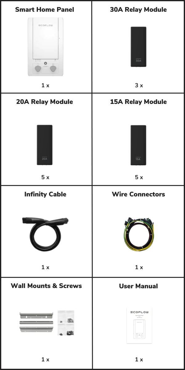 Variety is key. The Smart Home Panel connects up to 10 home circuits for home backup, with different current ratings for different connected loads.